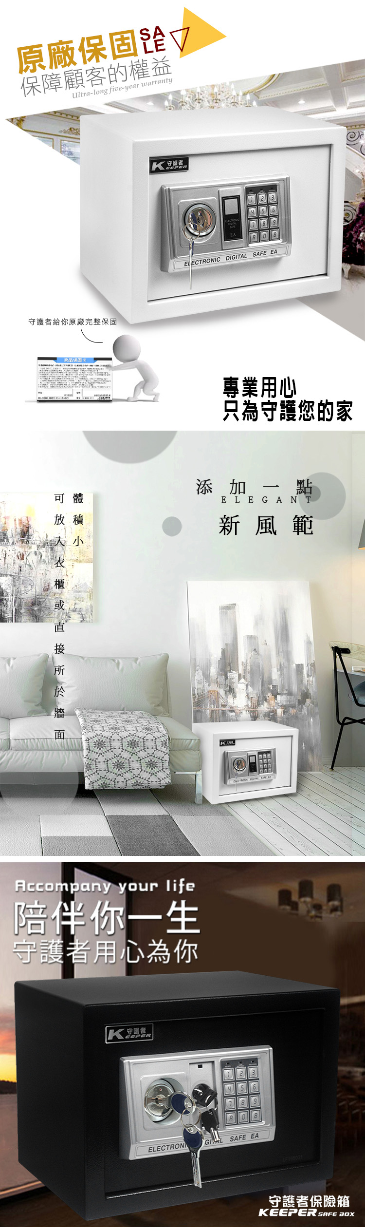 【守護者保險箱】密碼+鑰匙 保險箱 電子 保險櫃 三色可選 25EAK25EAK-黑