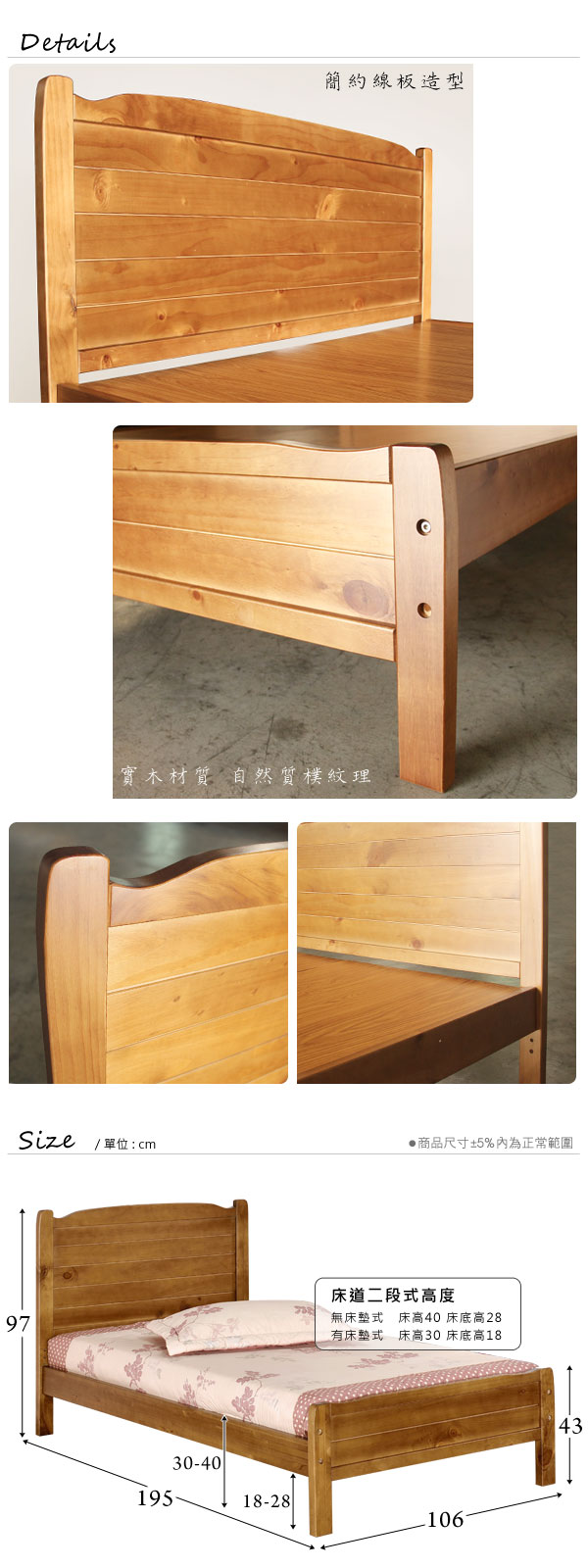 傢俱工場-強森 全實木粗腳穩固 床架/床底 單人3尺原木色
