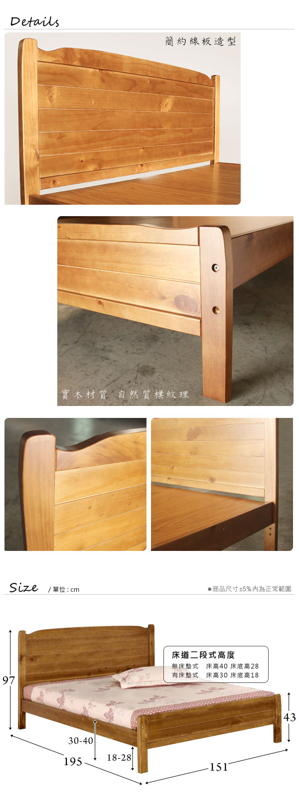 傢俱工場-強森 全實木粗腳穩固 床架/床底 雙人5尺原木色