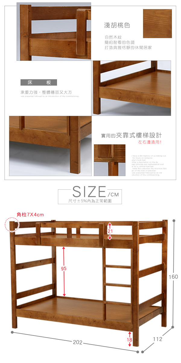 【本木】德里密 松木3.5尺雙層床