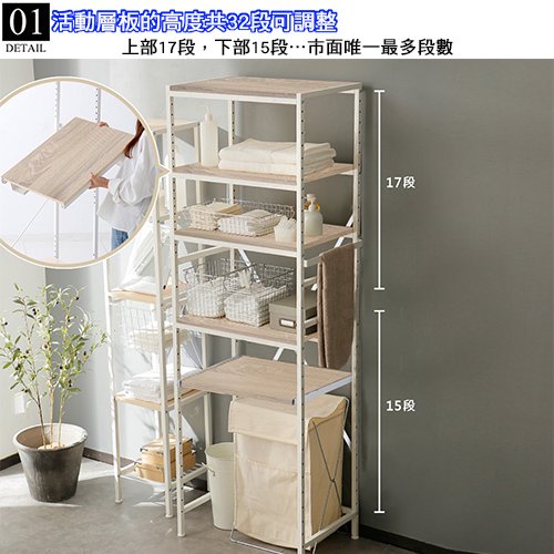 《C&B》Justice依得多用途廚房衛浴收納置物架,是日本最新流行的復古『鐵』+『木』的組合商品,黑色或白色烤漆的鐵管與木材紋路的木板,整體營造出工業復古風格,高質感有格調,100%台灣生產,採用符合日本市場要求的板材,表面使用防刮耐潑水的加硬美耐板處理,鐵管則是高質感的粉體塗裝烤漆,無論是層板的用料或鐵管的厚度與規格皆是外銷商品的要求,質感佳耐用性強。