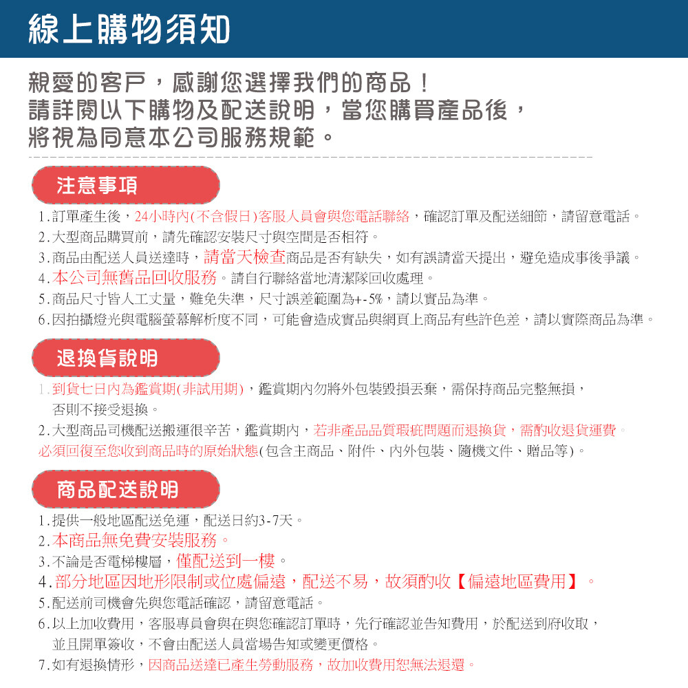 ◎部份偏遠山區、外島,需視情況詢問是否有無貨運配送服務,敬請見諒!