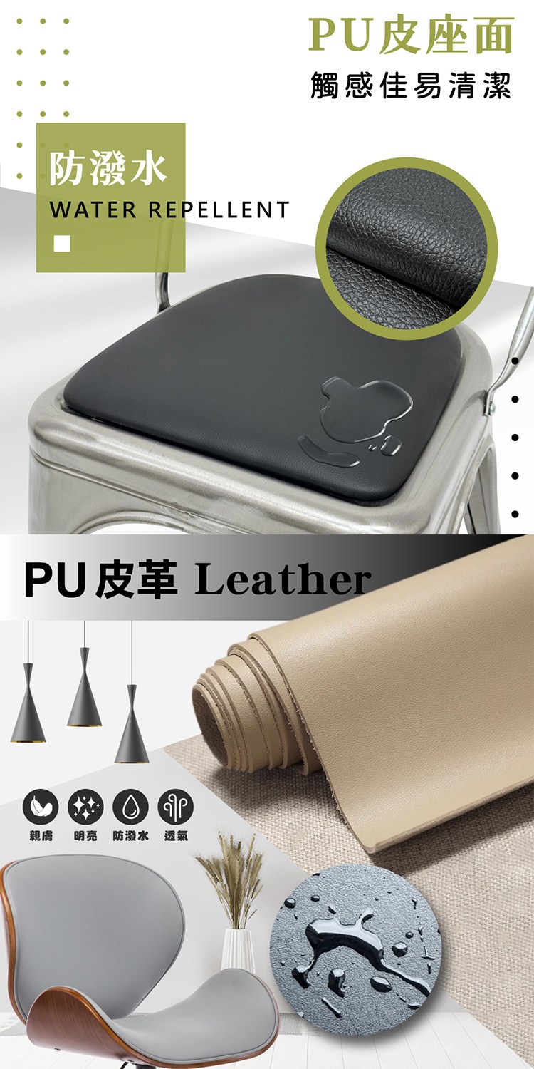 * 防潑水PU皮座面,觸感佳易清潔