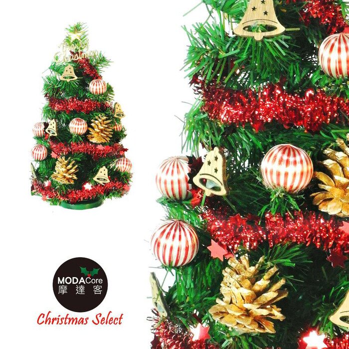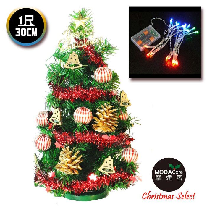 摩達客 耶誕迷你裝飾聖誕樹 聖誕擺設 綠色 + 紅色 + 銀色 30cm