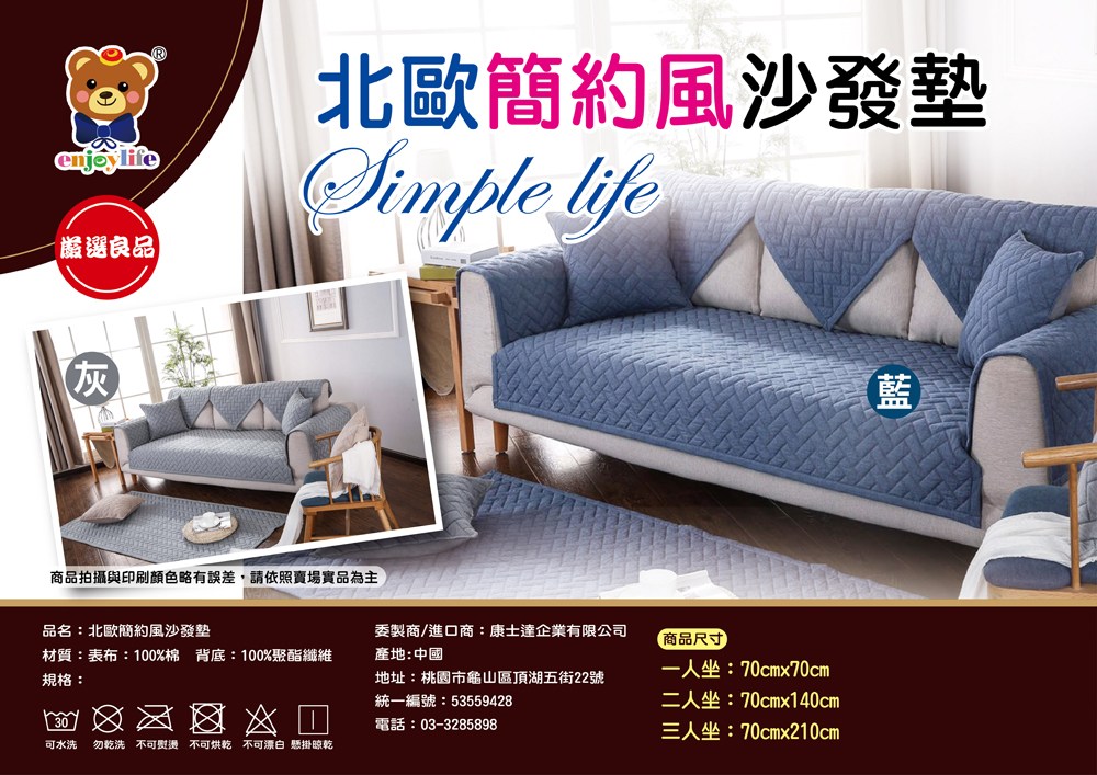 北歐簡約沙發墊 三人 70x210cm