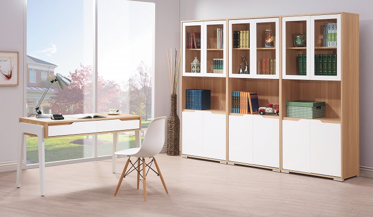 EASY HOME-雙層強化玻璃門厚板書櫃(松木色)-W60*D29.1*H179CM