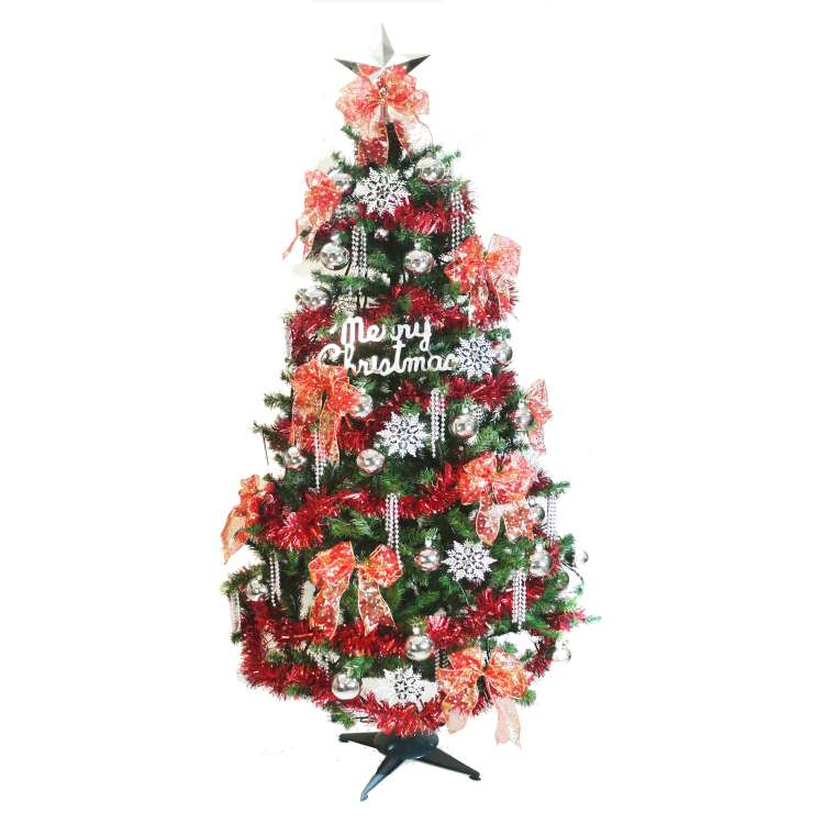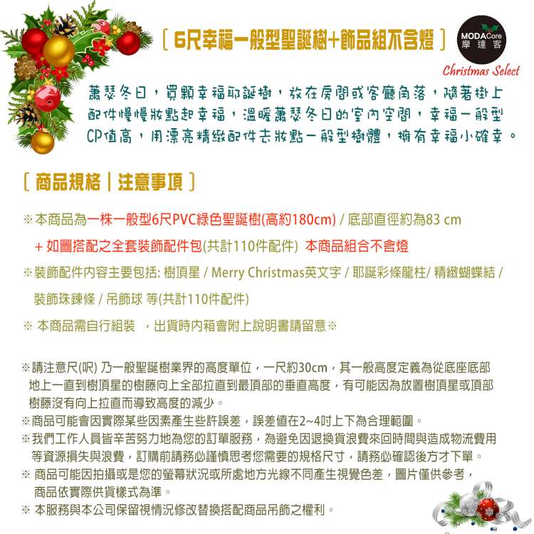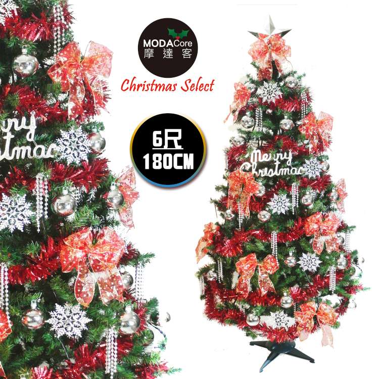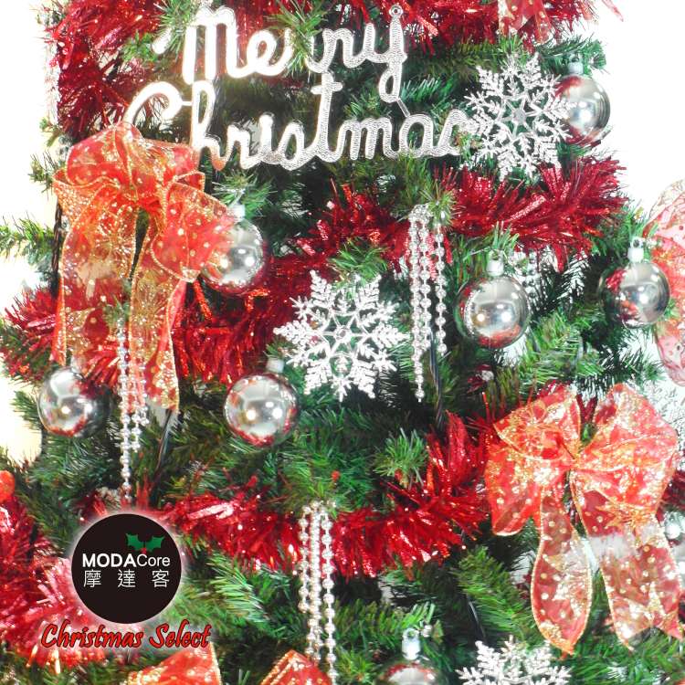 摩達客耶誕-台灣製7尺(210cm)特級綠松針葉聖誕樹+高級聖誕花蝴蝶結系配件+100燈LED燈暖白光2串(附控制器)豪華組 飯店級(本島免運費)