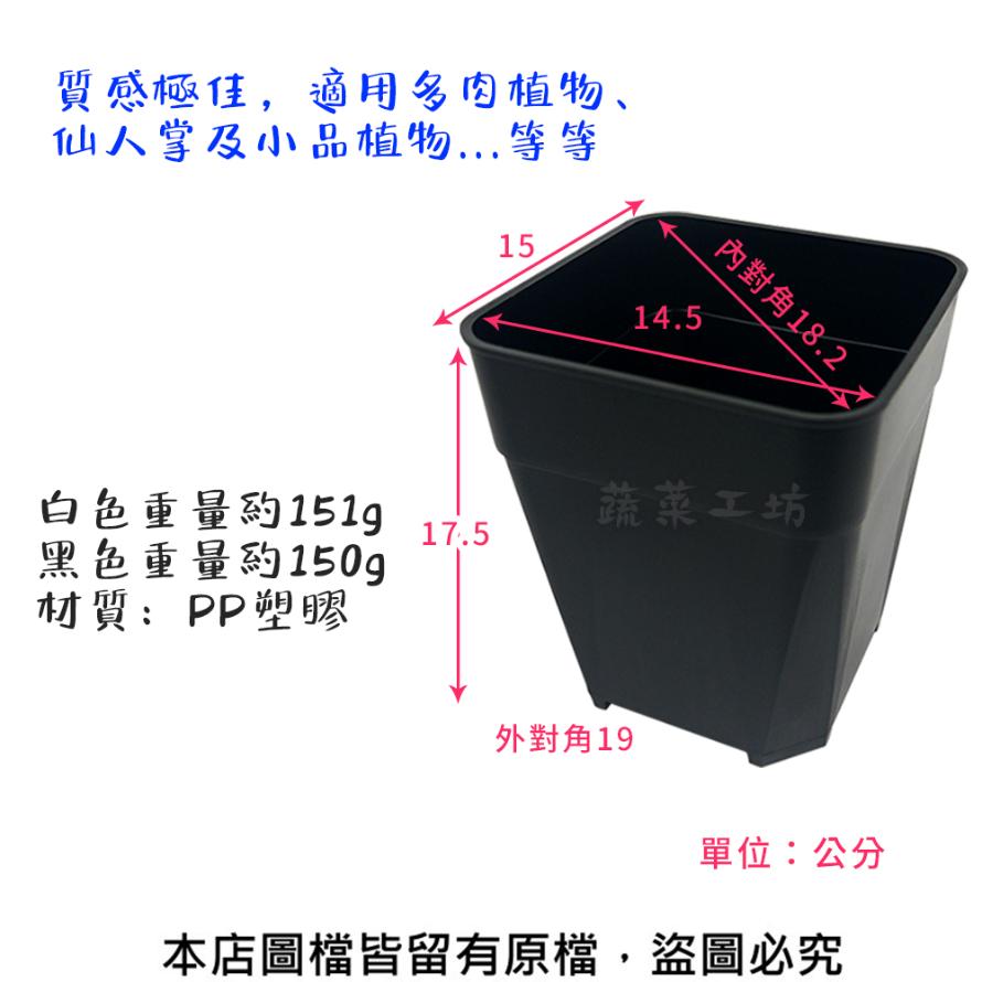 盆外約15*15cm 盆內約14.5*14.5cm 底部約11.7*11.7cm