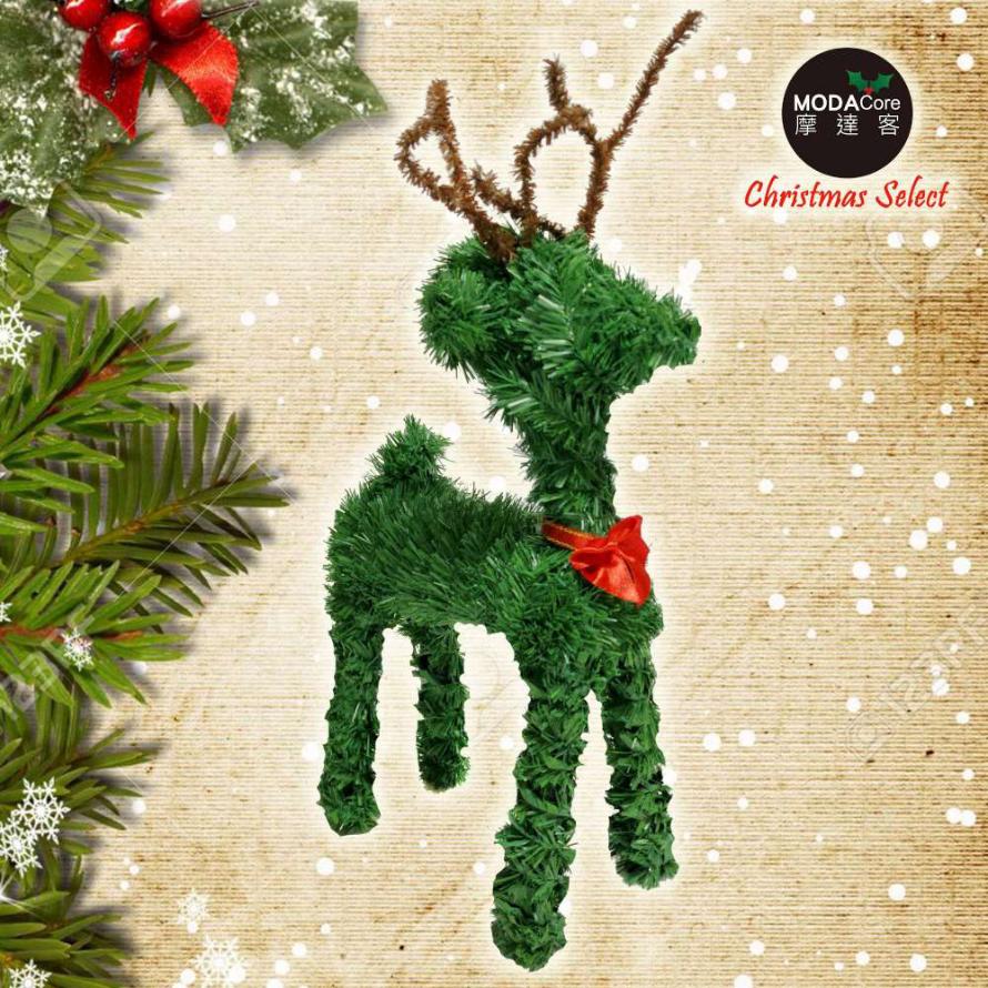 摩達客 可愛中型長腿綠色聖誕小鹿擺飾 16吋 綠色 1組