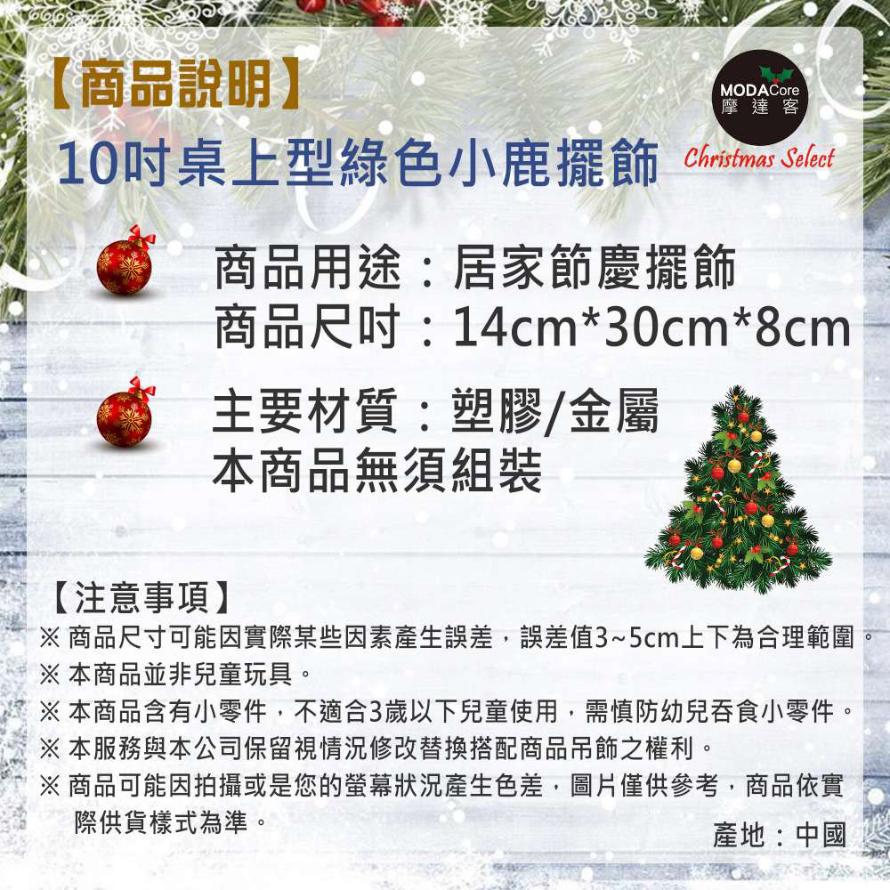 摩達客可愛綠色桌上型迷你10吋聖誕小鹿擺飾