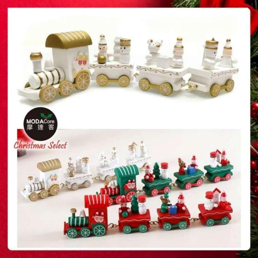 摩達客-耶誕木質小火車 (白色款) --聖誕禮物擺飾兒童玩具