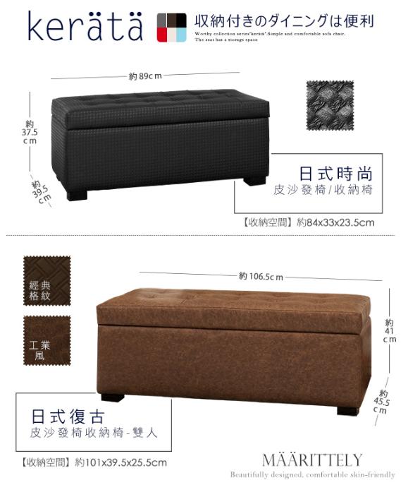 JP Kagu 日式時尚皮沙發椅收納椅-黑