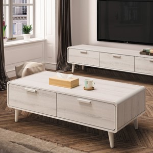 文創集 喬爾4.2尺原橡二抽大茶几-126x60x43.5cm免組
