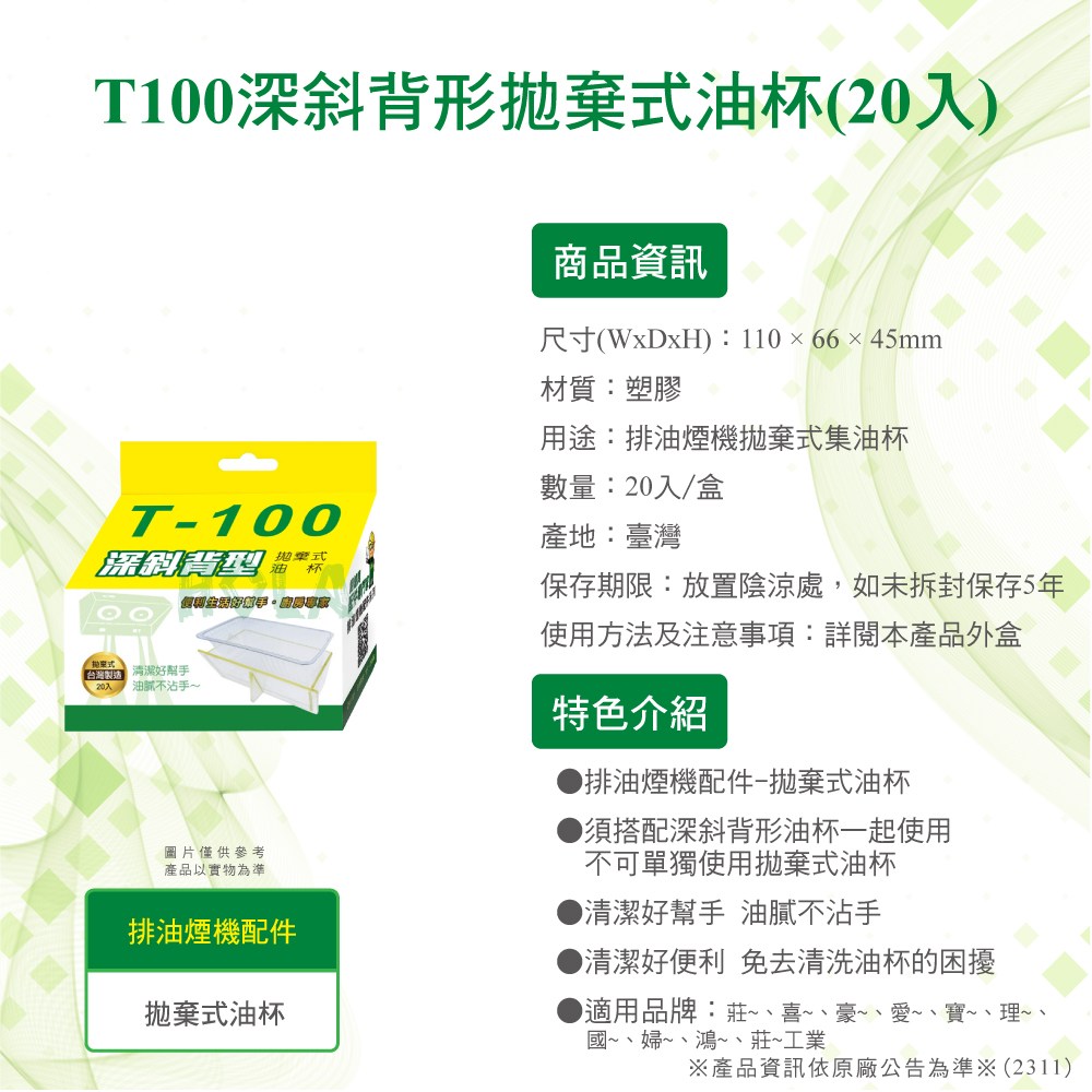 (2)T100深斜背形拋棄式油杯(20入)*2盒