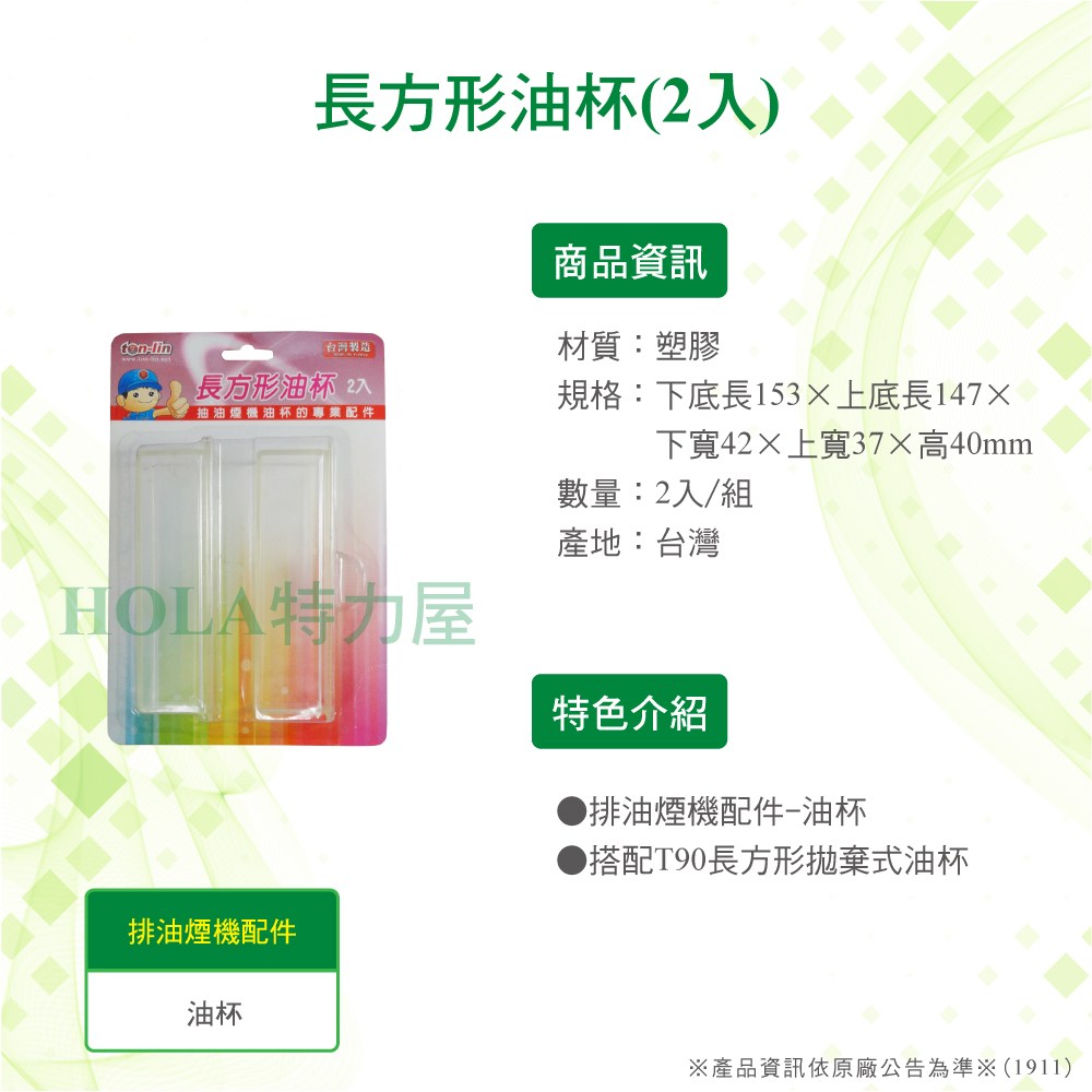 ◆搭配T90長方形拋棄式油杯(20入)