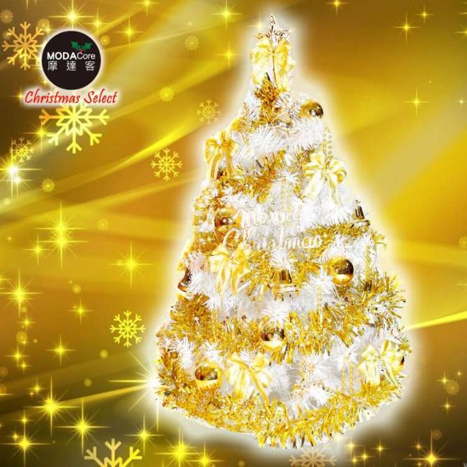 摩達客3尺豪華版夢幻白色聖誕樹流金系配件組不含燈
