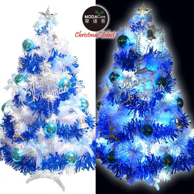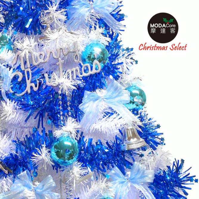 摩達客耶誕-台灣製5呎/5尺(150cm)豪華版晶透藍系聖誕樹(銀藍系配件組)+100燈LED燈藍白光2串(附IC控制器)本島免運費