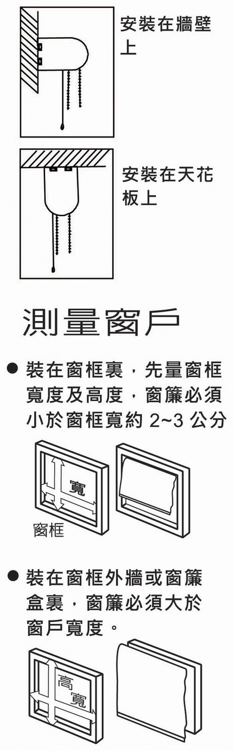 將包裝盒內所附的3個固定鐵片鎖在天花板或牆壁面上,再將捲簾本體安裝在固定片上固定即可。