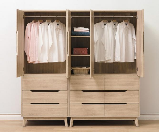 直人木業-北歐白楓木標準衣櫃150公分(兩個三抽衣櫃)