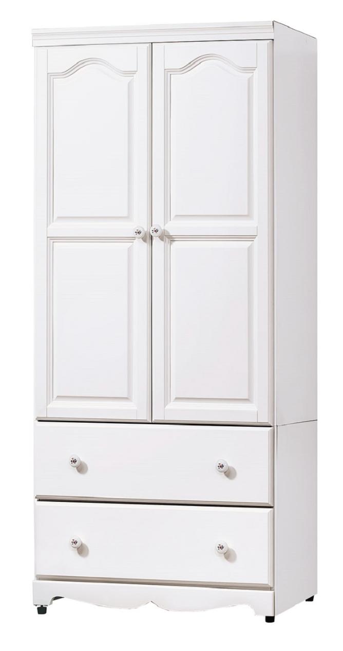 文創集 帝伊新古典白2.7尺二門二抽高衣櫃-80.5x59x198cm免組