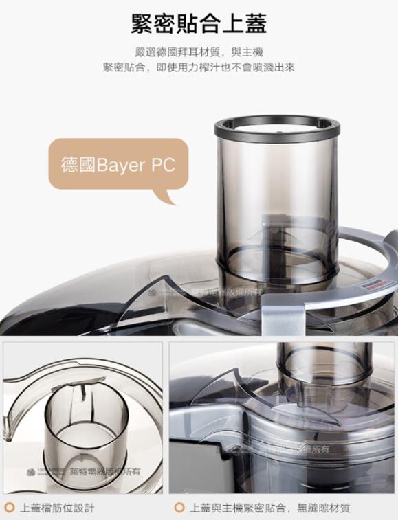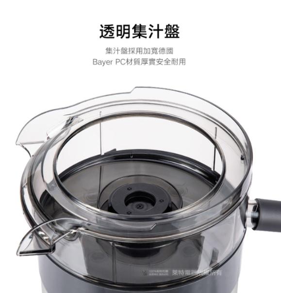 *透明集汁盤採用Bayer PC材質厚實安全耐用