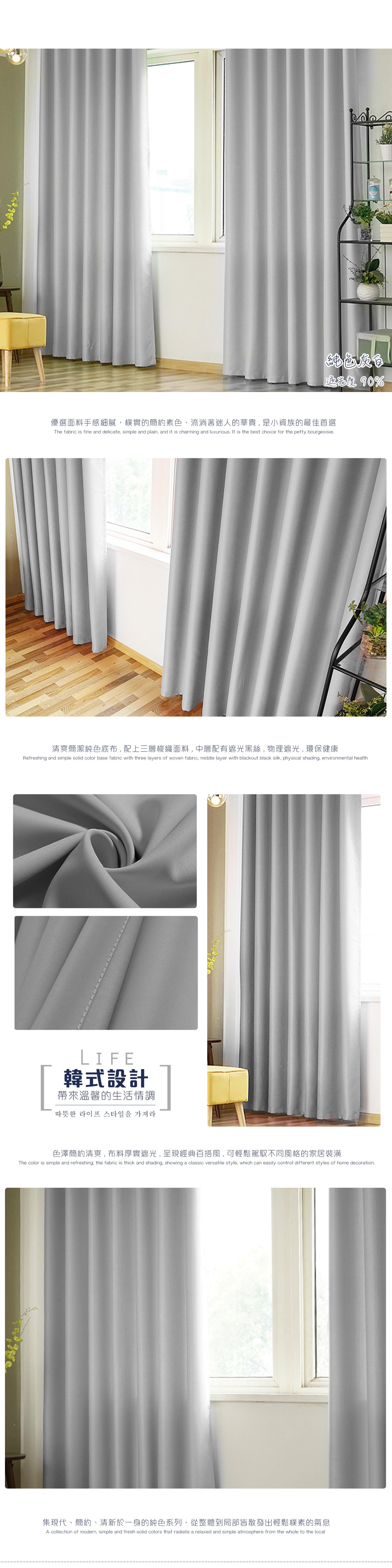 【小銅板-加厚純色遮光窗簾】寬100X高180-2片入-總寬200公分純色灰白
