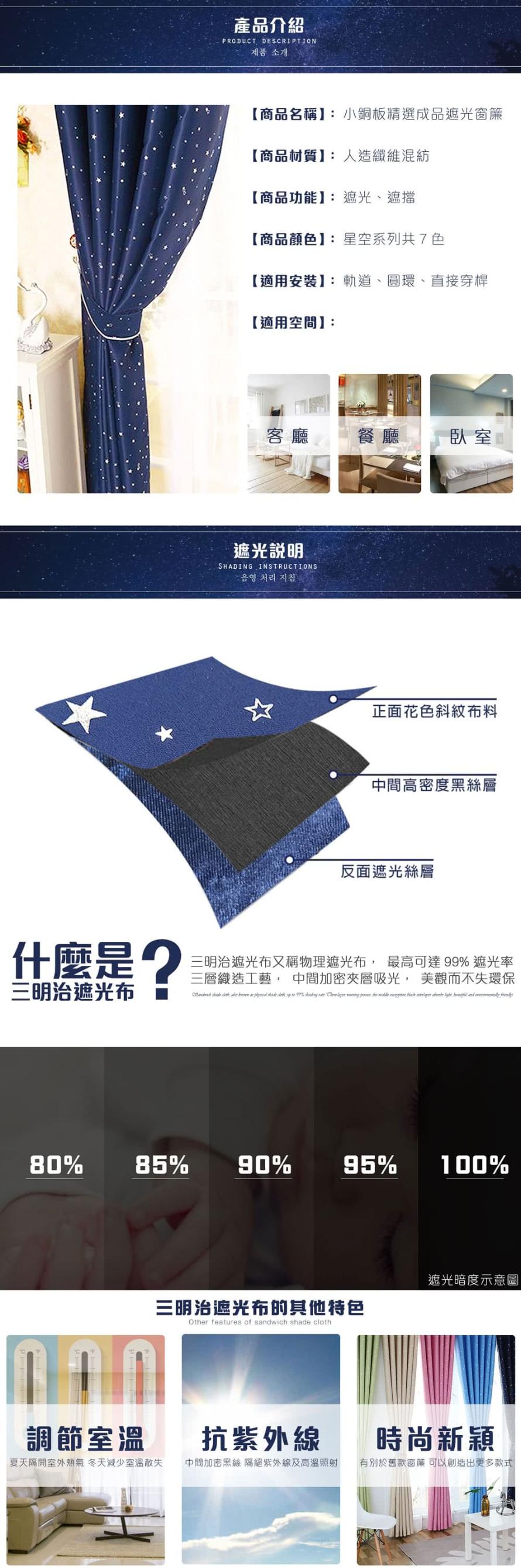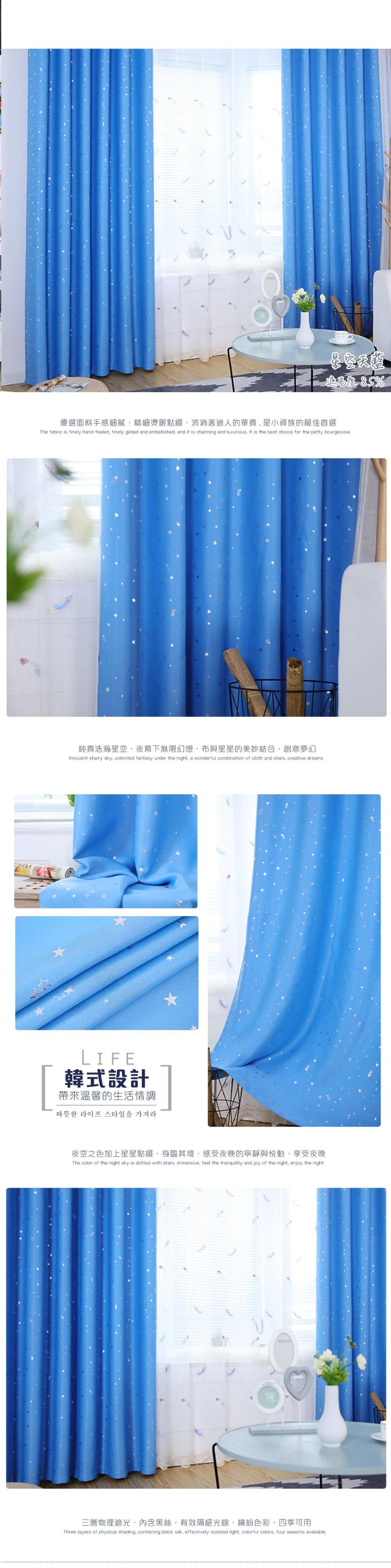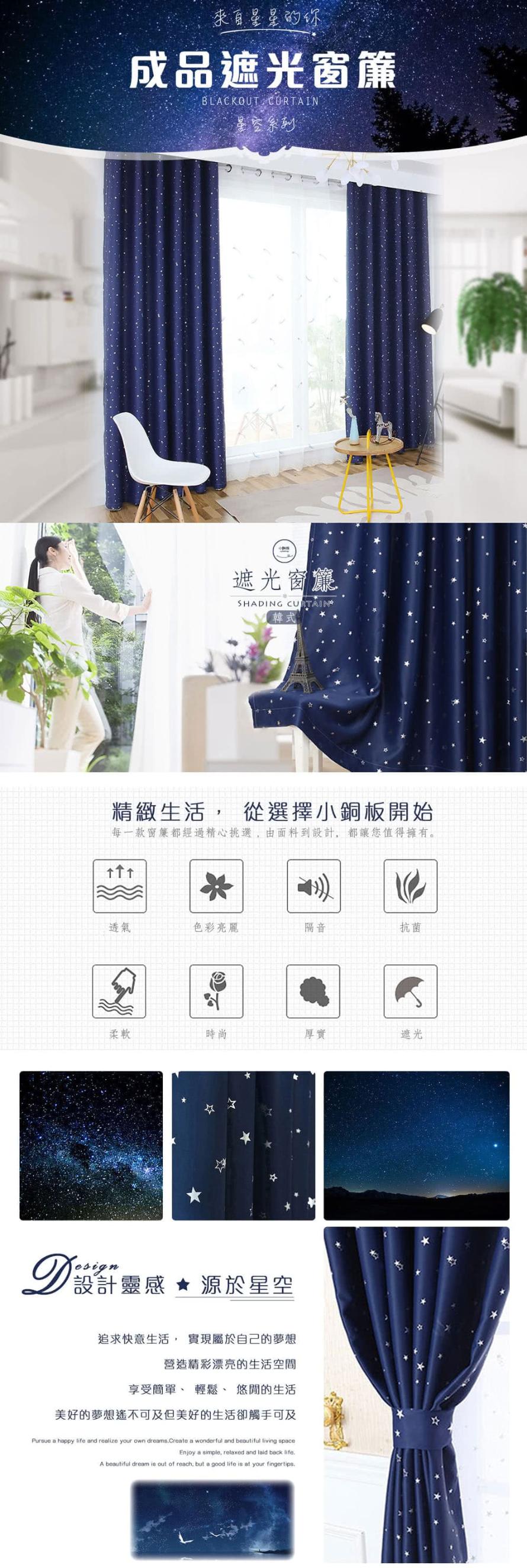 【小銅板-星空系列遮光窗簾】單片寬100x高165-1套2片入(多色可璀璨星空深藍