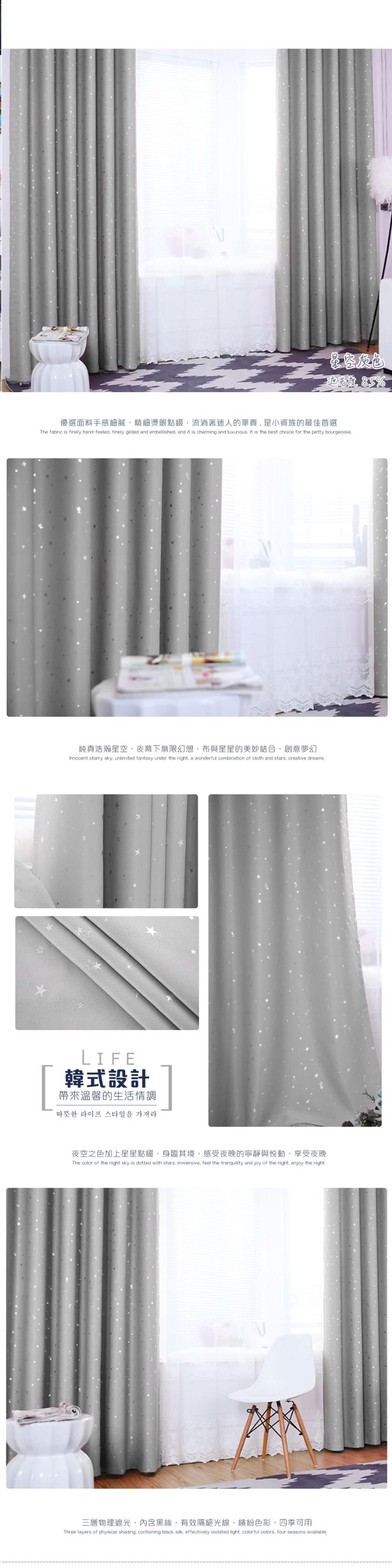 【小銅板-單層遮光窗簾】單片寬100*高130(2片入)璀璨星空灰