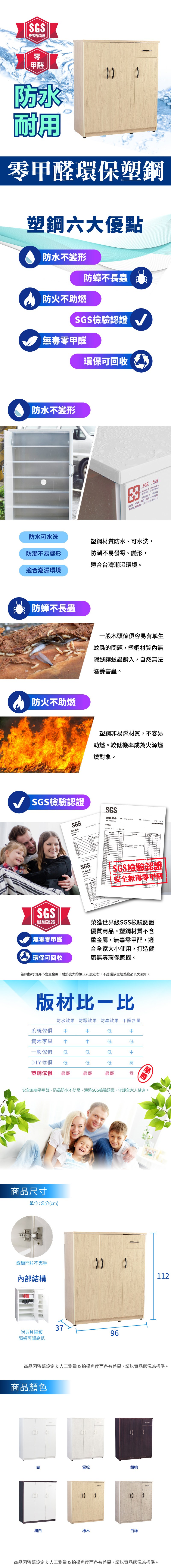 點我下載IHouse-貝莉 緩衝加深3門1抽塑鋼鞋櫃 (96x37x112cm) 雪松