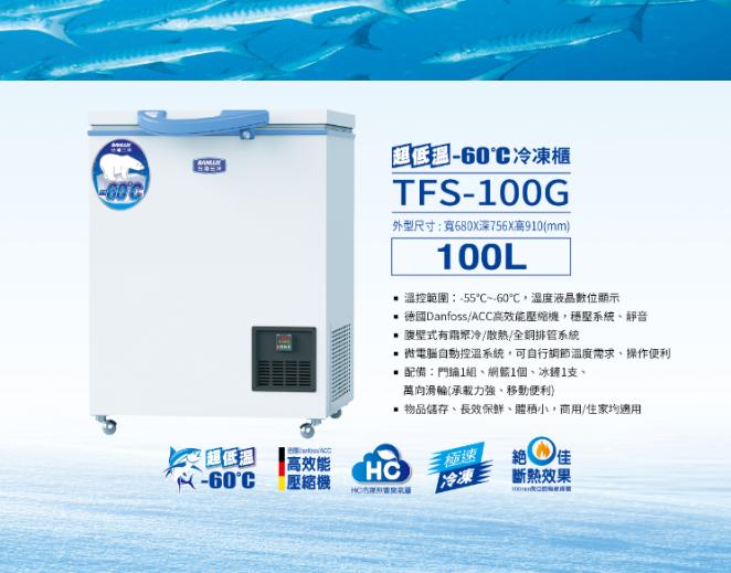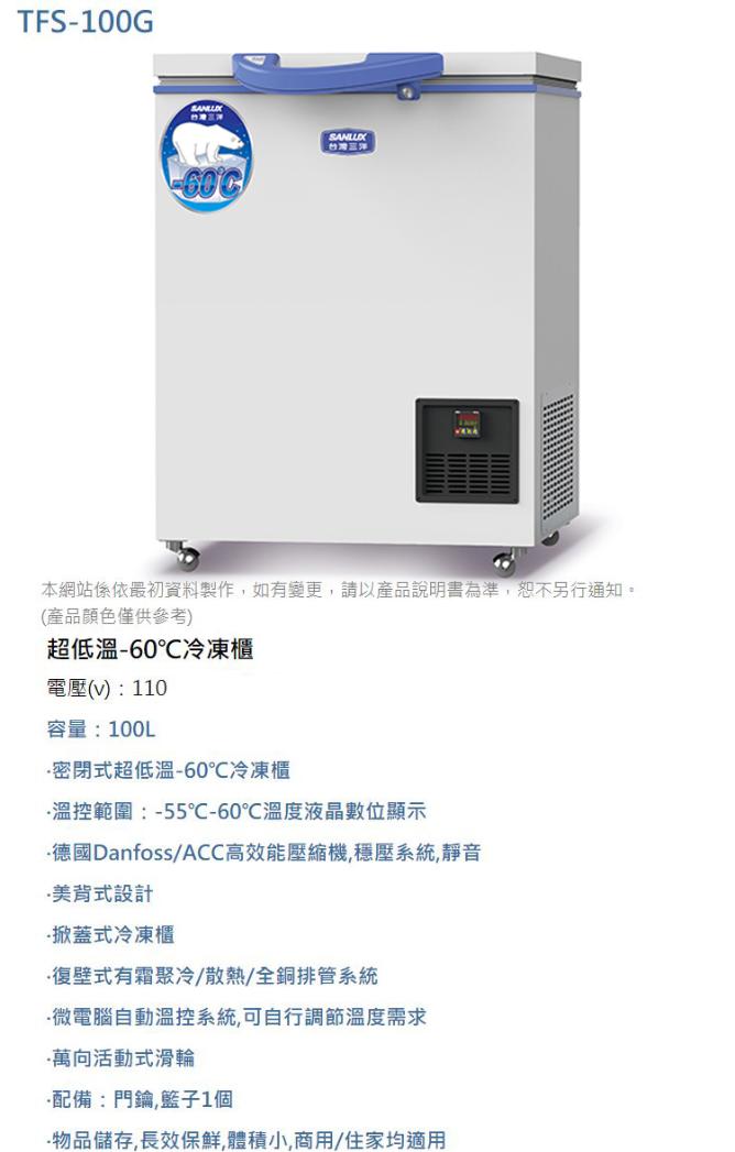 SANLUX台灣三洋 100L上掀式超低溫冷凍櫃TFS-100G~含拆箱定位