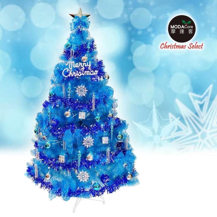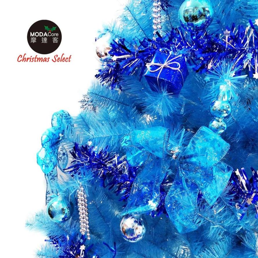 摩達客耶誕-台灣製5呎/5尺(150cm)豪華版晶透藍系聖誕樹(銀藍系配件組)+100燈LED燈藍白光2串(附IC控制器)本島免運費