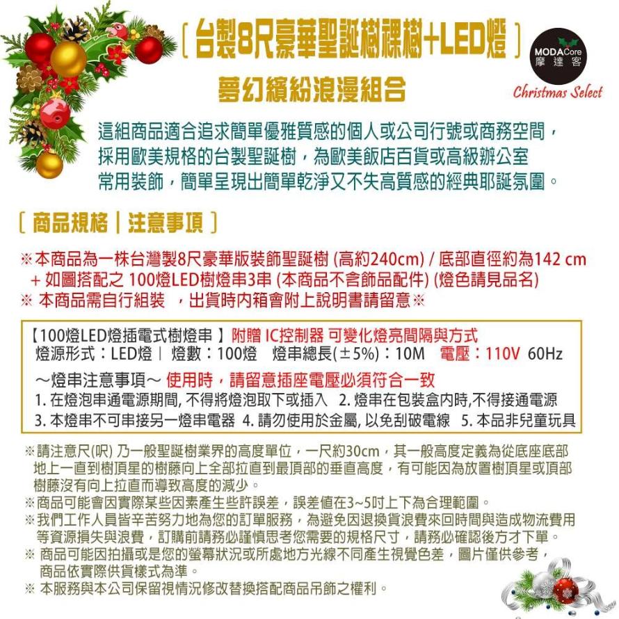 摩達客耶誕-台灣製7尺(210cm)特級綠松針葉聖誕樹+高級聖誕花蝴蝶結系配件+100燈LED燈暖白光2串(附控制器)豪華組 飯店級(本島免運費)