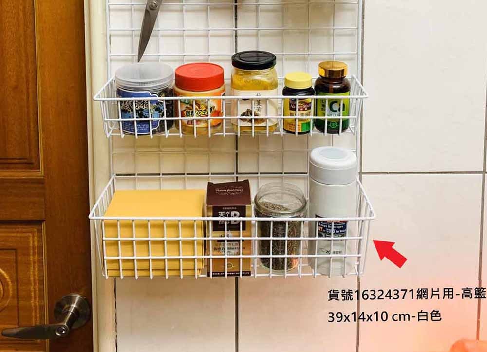 居家置物【高籃-白】表面烤漆不生鏽,須搭配牆面懸掛,可置放物品用,鐵材質,堅固又耐掛,網狀工具籃,另可搭配掛鉤懸掛物品,適用於廚房、浴室、客廳、房間、書房、倉庫、陽台、商品陳列!