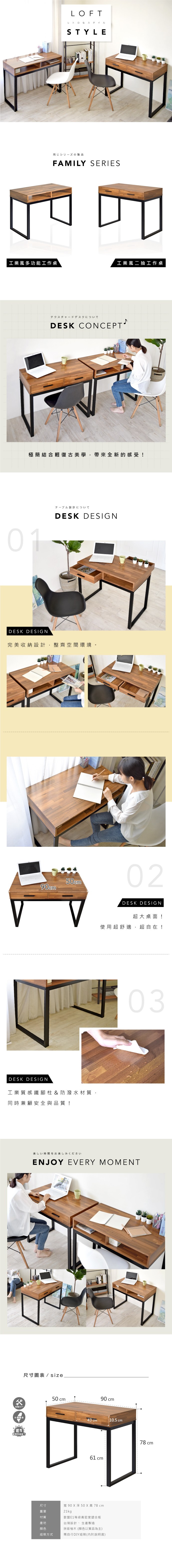 《HOPMA》工業風二抽工作桌 台灣製造 電腦桌 辦公桌 書桌-拼版柚木