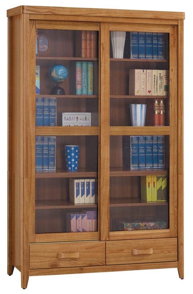 柚木4尺推門下抽書櫥