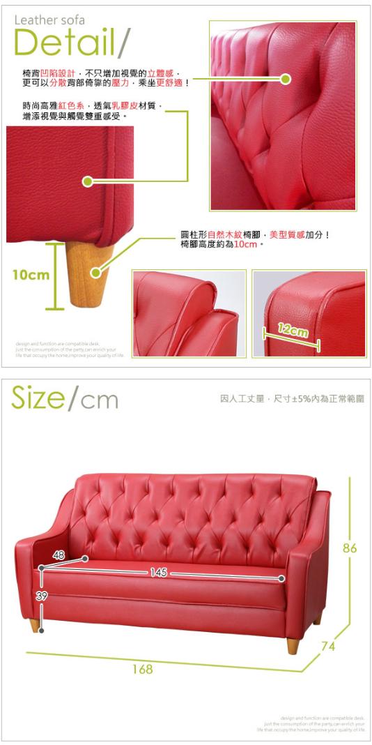 【KIKY】艾薇兒2+3人座皮扣沙發組(3色可選)紅色