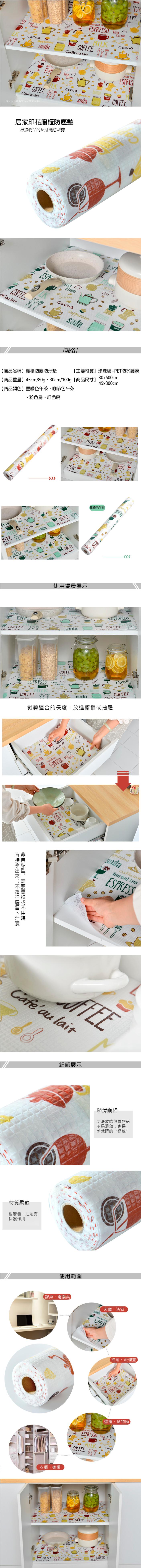 荷生活-PVC防潮印花半透明可裁切防滑櫥櫃鞋櫃防水防油墊-45公分寬-1入
