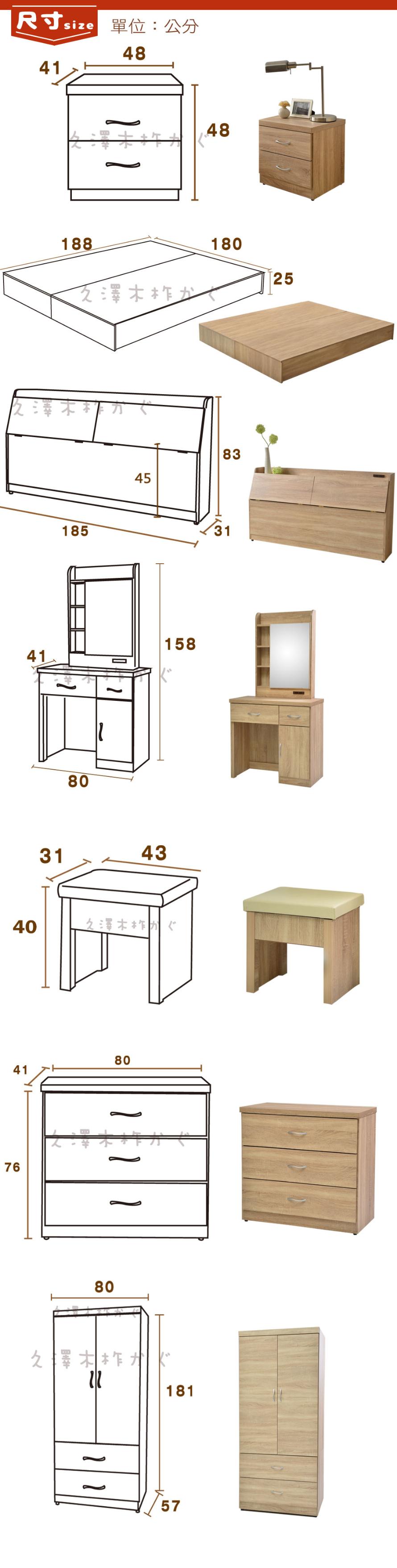 Homelike 喜家居雙人加大6尺六抽屜床組-原木色(2531)