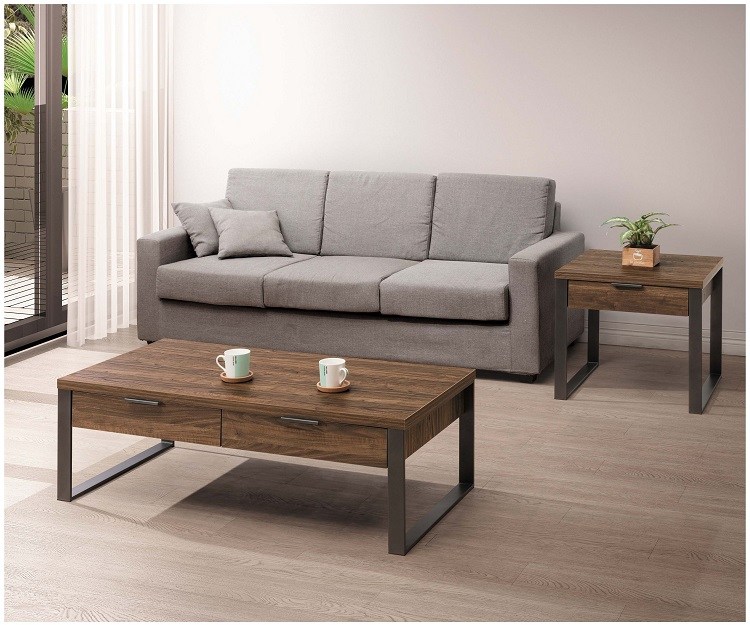 JP Kagu台灣製工業風大茶几-寬120cm(矮桌/咖啡桌/收納桌)木紋灰