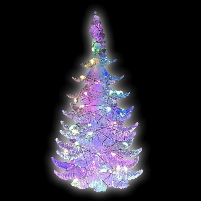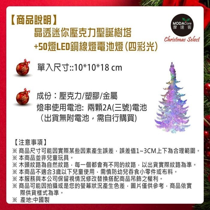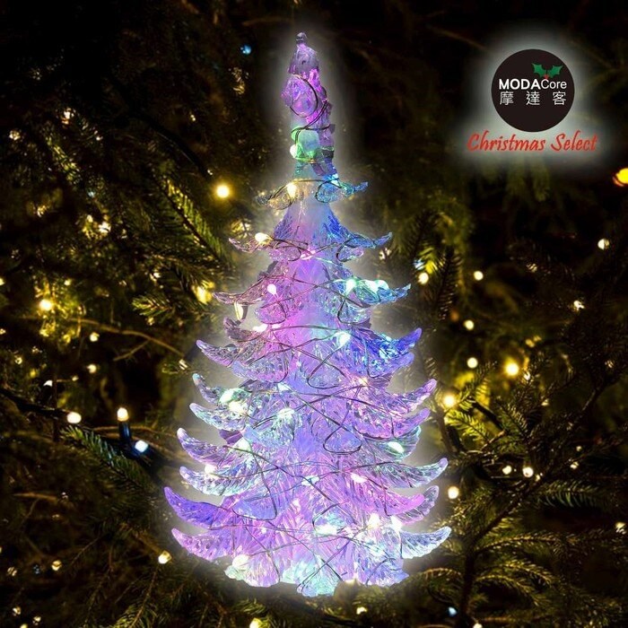 MODACore 摩達客 晶透迷你壓克力聖誕樹塔+50燈LED銅線燈電池燈 四彩光 1組 10 x 10 x 18cm