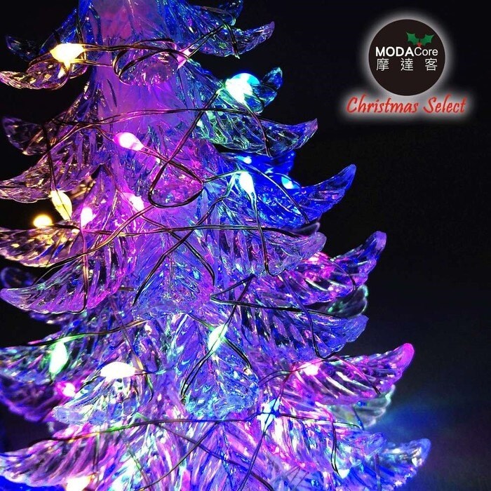 MODACore 摩達客 - 晶透迷你壓克力聖誕樹塔+50燈LED銅線燈電池燈(四彩光)