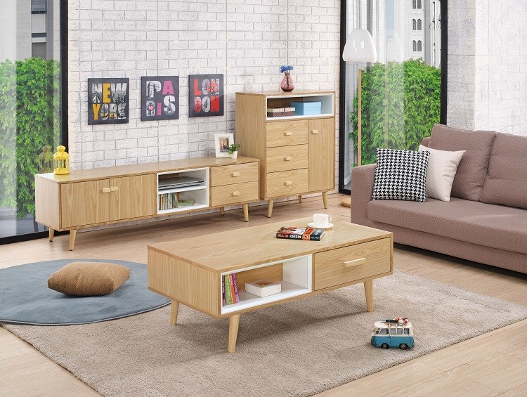 hoi!林氏木業北歐簡約拼色三抽儲物電視櫃2M UT1M