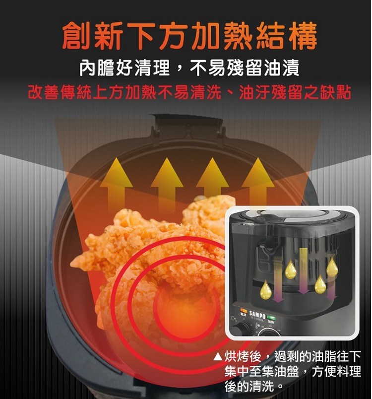 ◆底部加熱烘烤,隱藏式加熱管,方便清洗機體內部,不卡油汙