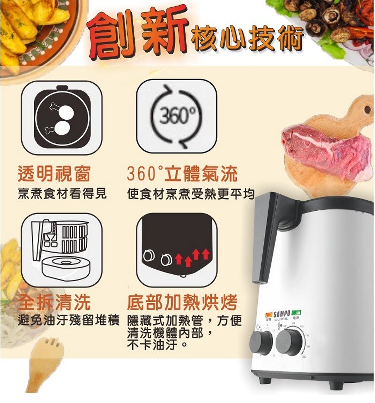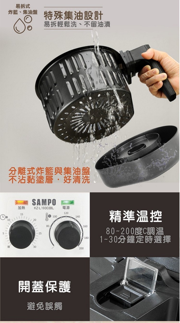 SAMPO聲寶 3L健康油切氣炸鍋 KZ-L19303BL