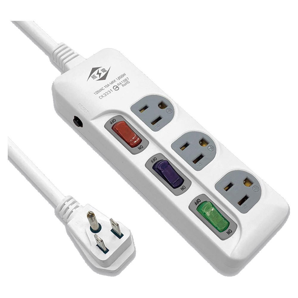 威電牌過載斷電延長線/CK3661/3孔6座6切/15尺條
