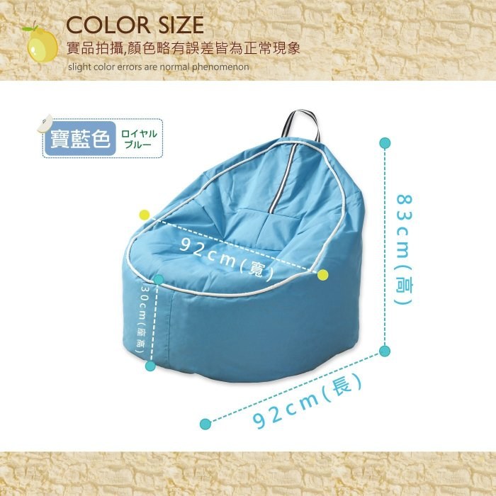 PS:懶骨頭充填量7分飽是最佳乘坐舒適感,可變化多重乘坐感覺~ |