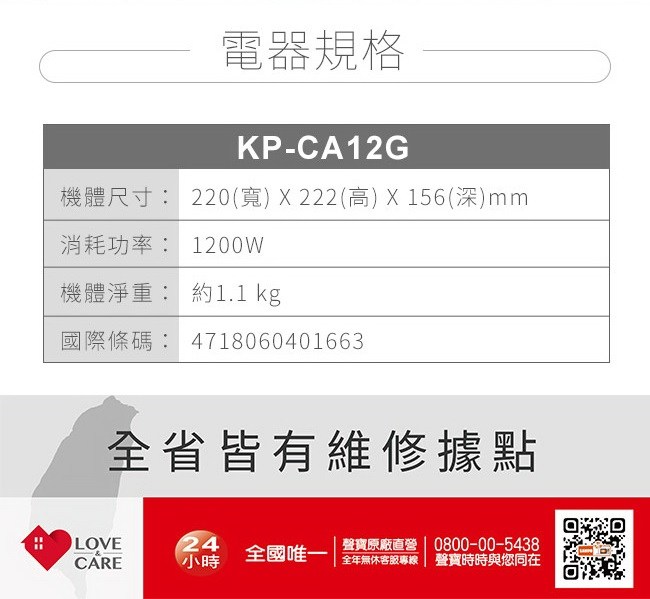 【聲寶SAMPO】1.2L玻璃快煮壺 (KP-CA12G)