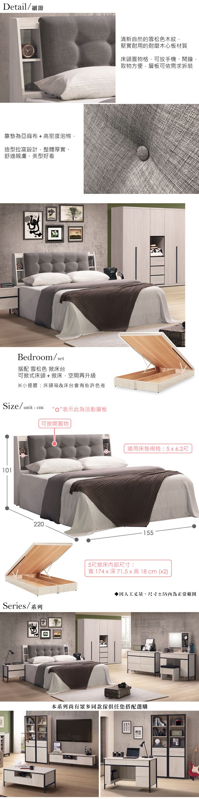 時尚屋 尼克白榆木床箱型5尺USB插座雙人床 DV10-726+UZR11-9981-5 免運費/免組裝/臥室組