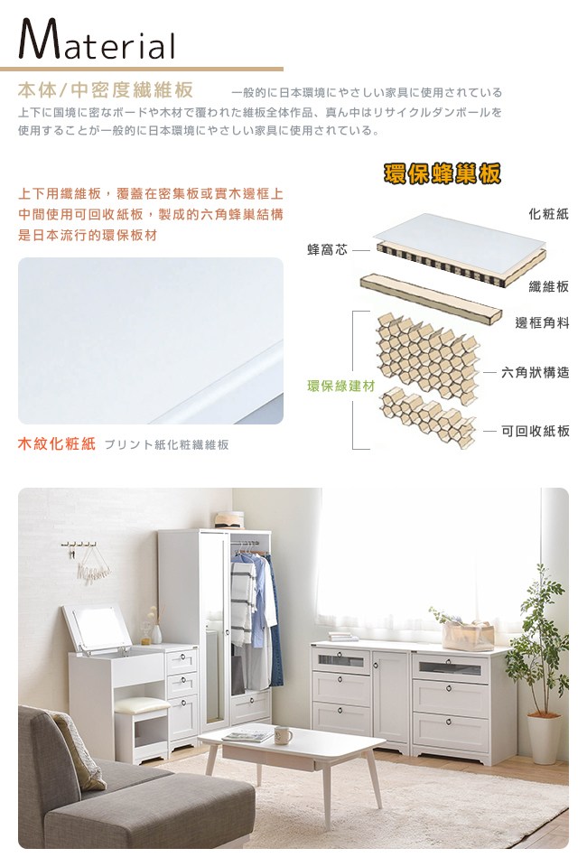 【Sato】ANRI小日子化妝三抽桌椅組‧幅80cm (樸素白)