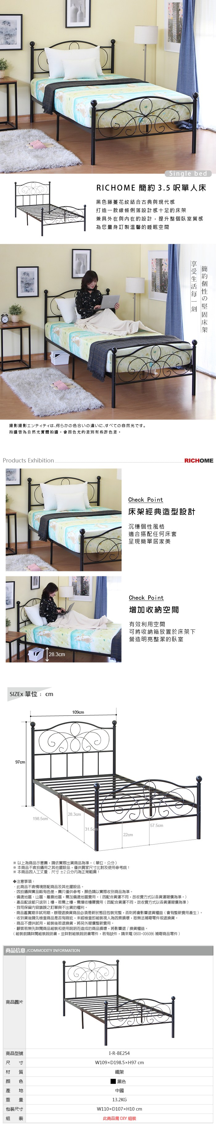 【RICHOME】夢萊3.5呎單人床